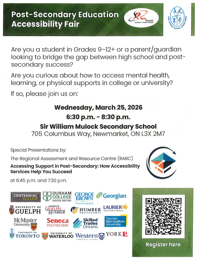 Please check your email for details regarding our upcoming Parent/Guardian-Teacher Interview Evening. Online scheduling through TeachAssist is now open, and we encourage you to book your preferred time slots as soon as you are able.